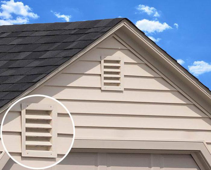 Следователно в този случай се правят два правоъгълни отвора, затворени от решетки в предната и задната част на гаража под покрива. Това ще осигури вентилация.