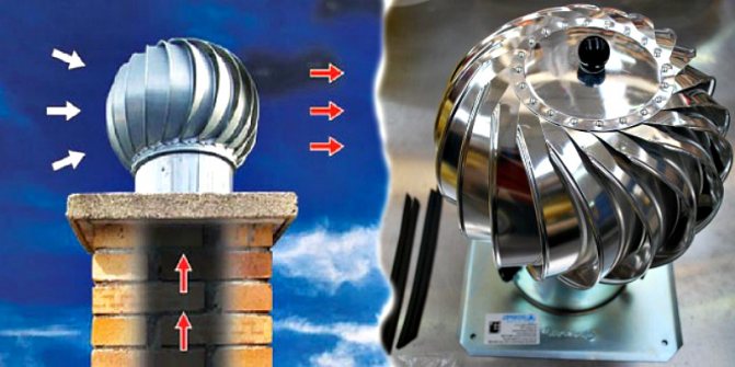 - Дифузер-лопатка. Той е инсталиран в горния край на канала за подаване на въздух. Този дизайн работи благодарение на вятърната енергия.