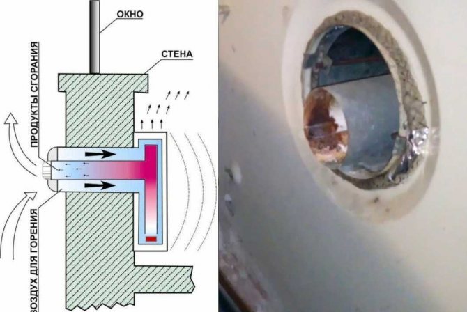 Предимствата на парапетния газов конвектор са лесен монтаж. Няма нужда да се изгражда комин. Просто трябва да прокарате тръбата през отвора в стената. Но това - дупката в стената - също е недостатък. Първо, отворът влошава топлоизолацията. Второ, шумоизолацията намалява. Ако застанете на отвора, можете ясно да чуете какво се говори в стаята.