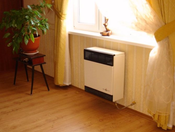 И по-нататък. Ако ще отоплявате няколко стаи по този начин, тогава всяка се нуждае от собствен конвектор. И тръбите ще теглят към него по стените. Освен това уплътнението е само отворено, тоест те не могат да бъдат скрити под корпуса. Само отгоре. Инсталирането на газов конвектор, задвижван от газова бутилка, не изисква проект (ако изобщо не се подава газ в къщата. Ако има газоснабдяване, проектът все още е необходим).