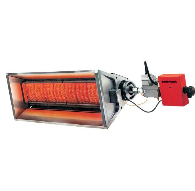 Газовите промишлени инфрачервени нагреватели се разделят на тъмни и светли. На тъмно процесът на горене е скрит; той се осъществява в запечатана тръба, през която се подава въздух. Инфрачервеното лъчение се излъчва с помощта на оребрени излъчватели. Температурата на горене в системата не надвишава +400 градуса.