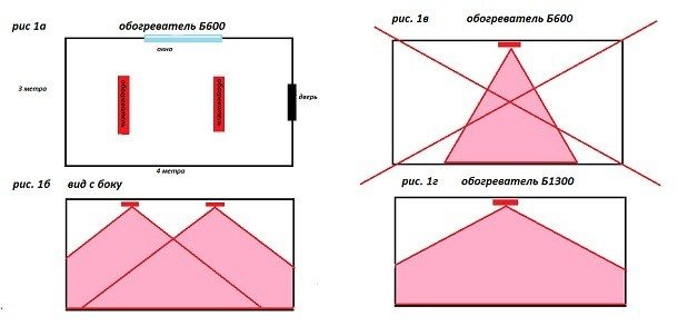 Местоположението на нагревателя до голяма степен зависи от спецификата на помещенията. Има оптимална схема за поставяне на IK в жилищни сгради. Изглежда така: