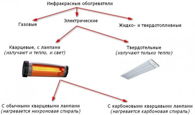 Съвременните модификации на битовите инфрачервени нагреватели могат да бъдат разделени на няколко класа според вида на конструкцията, начина на закрепване и функционалността.