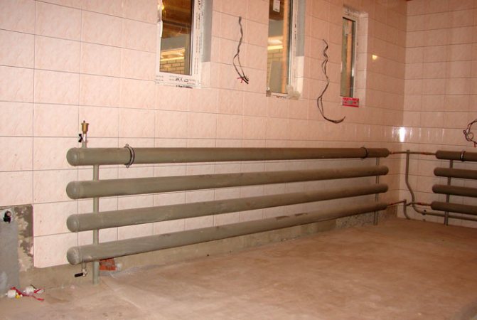 Най-простите и достъпни домашно приготвени отоплителни радиатори са направени от тръби с голям (100 - 250 мм) диаметър, заглушени в краищата и свързани с джъмпери. Тези устройства - така наречените регистри - имат голям вътрешен обем и съответно значителна топлинна инерция, което ги прави идеално решение за системи с котли на твърдо гориво.