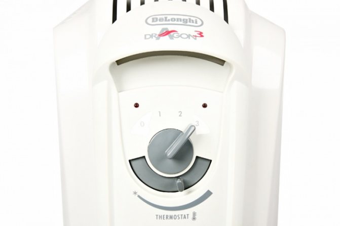 - блок за безопасност и контрол.Основният му елемент е термостат, снабден с предпазител. Първият е отговорен за настройка и поддържане на зададената температура, а вторият осигурява безопасна работа на отоплителното устройство. Ако по някаква причина маслото започне да изтича от корпуса, предпазителят ще изпълни своята "мисия", като спре подаването на ток към нагревателния елемент.