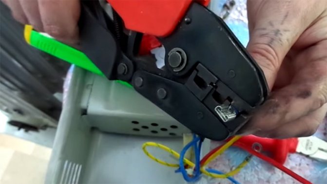 В случая, описан днес, новият нагревателен елемент се оказа малко по-различен от неуспешния по отношение на формата на контактите. Връзките на стария нагревателен елемент бяха винтови, а на новия бяха чипове „мама-татко“. Ако се е случило нещо подобно, тогава няма нищо лошо в това. Просто трябва да отрежете старите пръстени от проводниците и да натиснете чиповете "мама" върху тях. Не е трудно да се направи това, необходимите за такава работа комплекти са евтини. В същото време те винаги ще ви бъдат полезни не само при работа с домакински уреди, но и при ремонт на електрическата мрежа на автомобила.