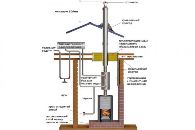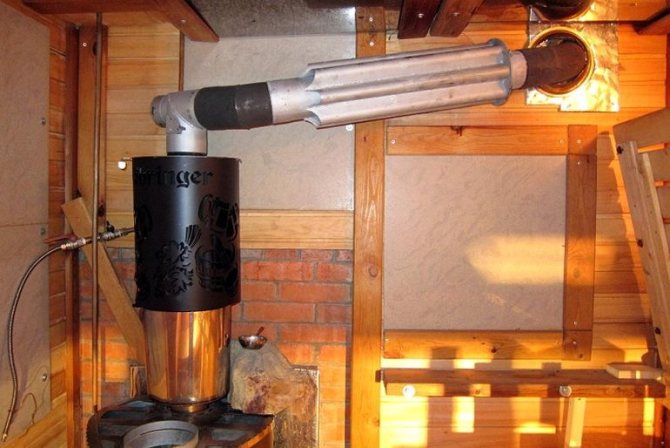 - Висока ефективност на отоплителната система чрез намаляване обема на горивото и организиране на задържане на топлина, постъпваща в тръбата вътре в помещението.