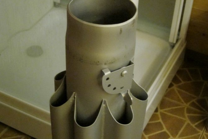 - Дължината на външните модули трябва да е малко по-малка от вътрешната димоотводна тръба. Оптималната дебелина на стоманата, използвана за тези елементи, е 0,5 мм.