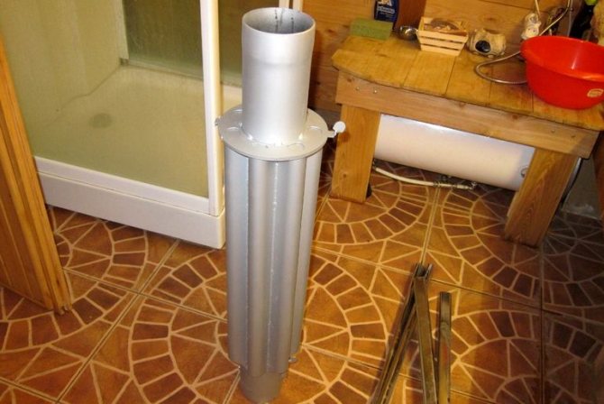 - Ако се предполага, че се прави една тръба, нейният диаметър трябва да осигурява разстояние между нейната вътрешна част и външната част на канала за изход на газ от няколко сантиметра.