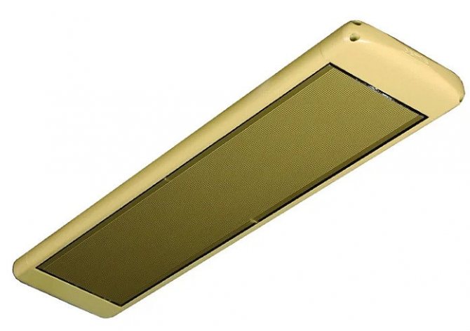 Модел за бързо затопляне на стаята. Предлага се за монтаж на стена или таван - можете да създадете горещи точки, където имате нужда от тях. Устройството е оборудвано с термостат за поддържане на зададената температура. При прегряване устройството автоматично се изключва.