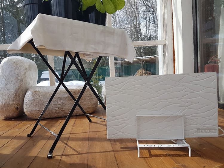 Какви са размерите на типичните решения в сегмента на кварцовите нагреватели? Например кварцовият нагревател TeplEko, отзивите за който са сред най-често срещаните сред потребителите на този тип устройства, е доста компактен. Основният му елемент - плоча - има ширина около 60 см, височина 35 см, дебелина около 2,5 см. Теглото на нагревателя е около 12 кг. Индикаторите, както виждаме, са напълно приемливи от гледна точка на комфорта на инсталацията (както вече отбелязахме по-горе) и местоположението на устройствата в стаята. Те няма да заемат много място и като правило не е необходимо да се монтират обемисти спомагателни конструкции, които да ги държат.