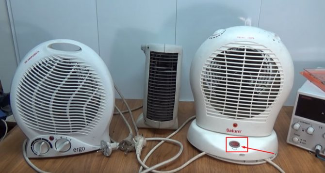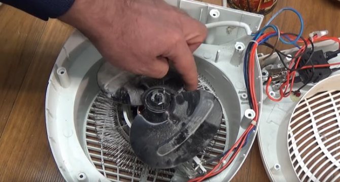 Включвате нагревателя на студения вентилатор към мрежата, той работи известно време, след което лопатките спират да се въртят спонтанно. Нагревателните елементи в началото все още се нагряват, а след това също се изрязват.