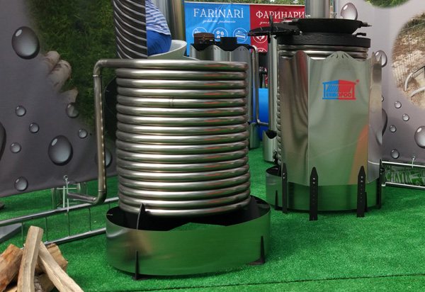 Флагманът на гамата нагреватели TERMOPOOL е моделът VOLCANO 50. Той включва всичко необходимо за пълно и бързо нагряване на водата. А именно: Спирала 36 м (тръба AISI 304 неръждаема стомана 32 * 2 мм), покрита отвътре с топлоустойчив емайл до 1000 градуса. Капакът е изработен от неръждаема стомана AISI 304, (3 мм) с използване на топлоустойчиви арматури от неръждаема стомана с диаметър 21 мм и декоративни елементи, също от неръждаема стомана. Коминът е изработен от неръждаема стомана. Състои се от две тръби 0,5м, диаметър 140мм, затворен клапан и дефлектор. Екран от неръждаема стомана 0.8 мм, който напълно покрива намотката. Стойката (изработена от 5 мм стомана и направена с помощта на лазерно рязане) е покрита с топлоустойчив емайл. Решетката е направена от чугун с дебелина 20 мм. Пръстен / Капак с декоративна кройка и врата за лесно отстраняване на пепелта. (Неръждаема стомана с дебелина 0,8 мм) височина 180 мм.