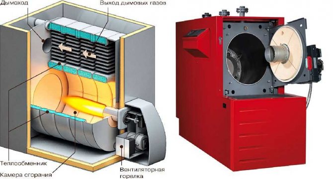 Подобно е на традиционното оборудване: горивото се изгаря в пещта, поради което охлаждащата течност се нагрява.