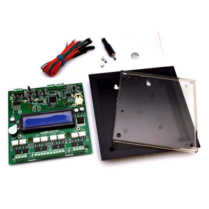 Клавиатурата и превключвателите на превключвателите на режимите бяха фиксирани от вътрешната страна на капака. По този начин се оказа добър контролен блок за отопление на частна къща.