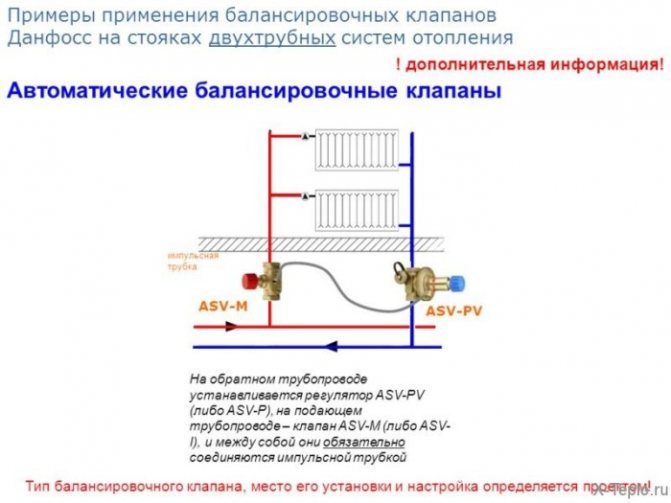 Балансирането в отоплителните системи се извършва с помощта на два вида регулиращи клапани: