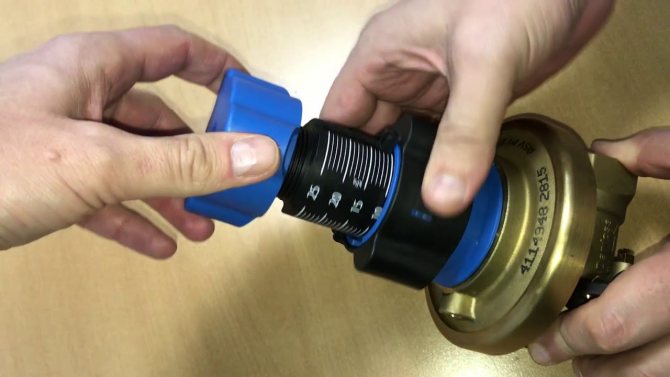За настройка в жилищна сграда с голям брой щрангове той използва данни за обема на водата, доставяна от електрическа помпа, който се разделя на броя на щранговете. Получената стойност в кубически метри на час (за клапан Danfoss LENO MSV-B) се настройва на цифровата скала на устройството чрез завъртане на дръжката.