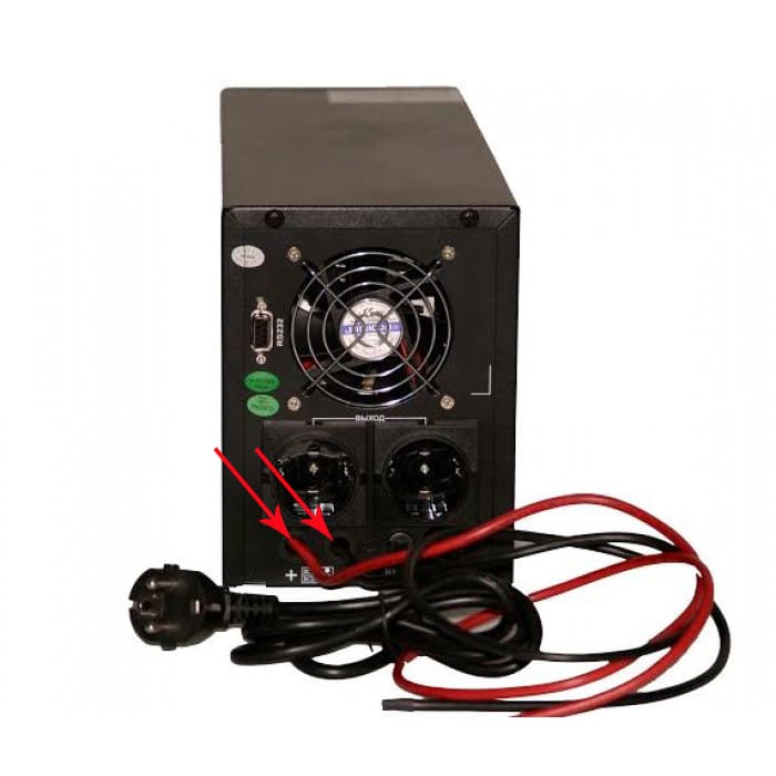 - Към тези терминали свържете инвертора, и ние оборудваме входа на захранването с проводник с щепсел за свързване към мрежата.