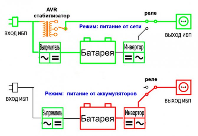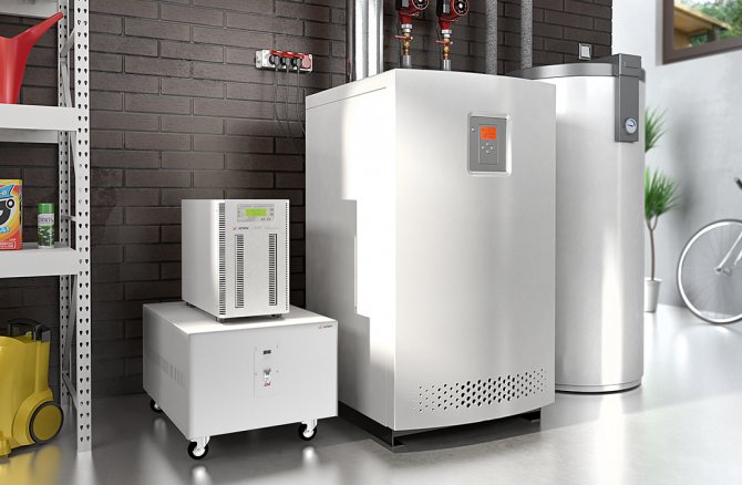 Справка! Всички UPS / UPS отговарят за прехвърлянето на мощността на отоплителната помпа към батерията, преобразуването на напрежението и филтрирането на шума от линията. Стабилизирането на напрежението се извършва само от устройства оборудван със стабилизаторен блок.