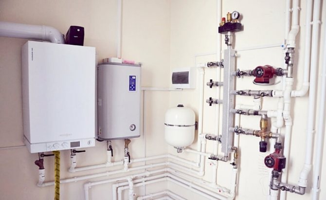 Работата на двутръбна система за едноетажна дървена къща, базирана на котел с твърдо гориво с дълго изгаряне: