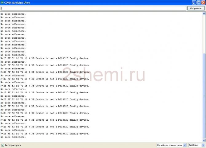 Фигура 6 - резултатът от работата с библиотеката OneWire.h