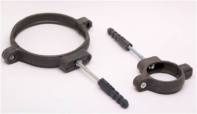 За спретнато и надеждно закрепване на тръбопроводи се използват готови крепежни елементи под формата на скоби от пластмаса или стомана или метални скоби. По-надеждни метални скоби обикновено се използват за монтиране на електрически или информационни мрежи в открито заграждение; тръбопроводите за отопление и студена и топла вода обикновено се монтират с помощта на скоби.