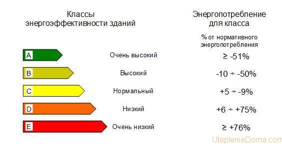 Енергоспестяващите технологии за частна къща повишават ефективността на използването на енергийния носител във всяка от неговите разновидности. Колкото по-икономично се изразходва енергия, толкова по-висок е класът на енергийна ефективност на къщата. Тези класове са дефинирани от строителните норми и разпоредби SNIP 23-03-2003. Таблица 3 определя, че: