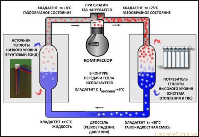 Принципът на работа на термопомпа.