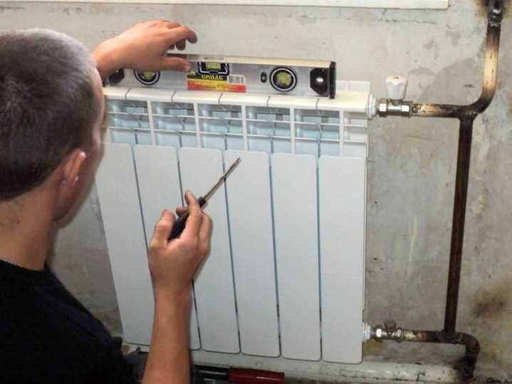 На снимката - монтаж на радиатор