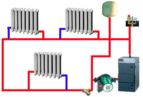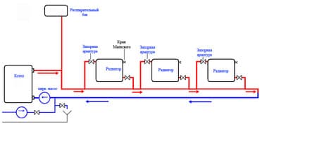 В допълнение, важна разлика е схемата на свързване на радиаторите, която може да бъде: