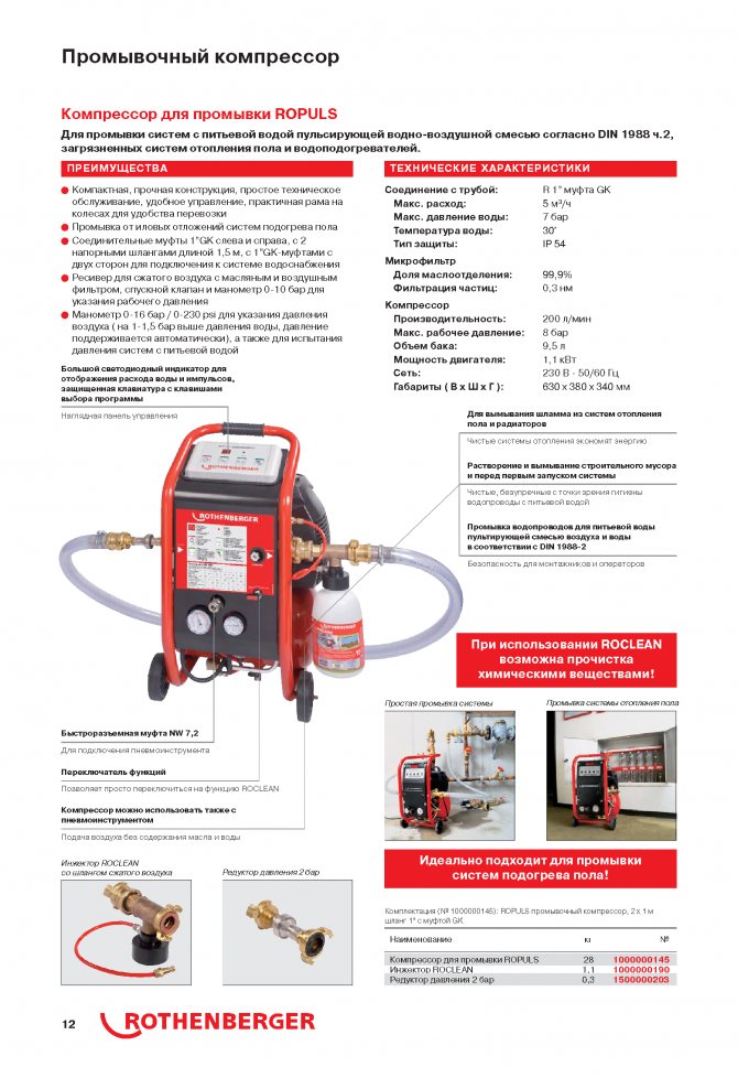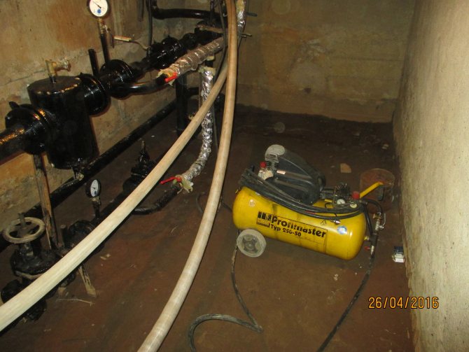 Моля, обърнете внимание, че обемът на доставената въздушно-водна смес се изчислява индивидуално за всяка отоплителна система, в зависимост от нейния обем. В противен случай с неграмотно изчисление можете да получите не чисти, а счупени тръби.