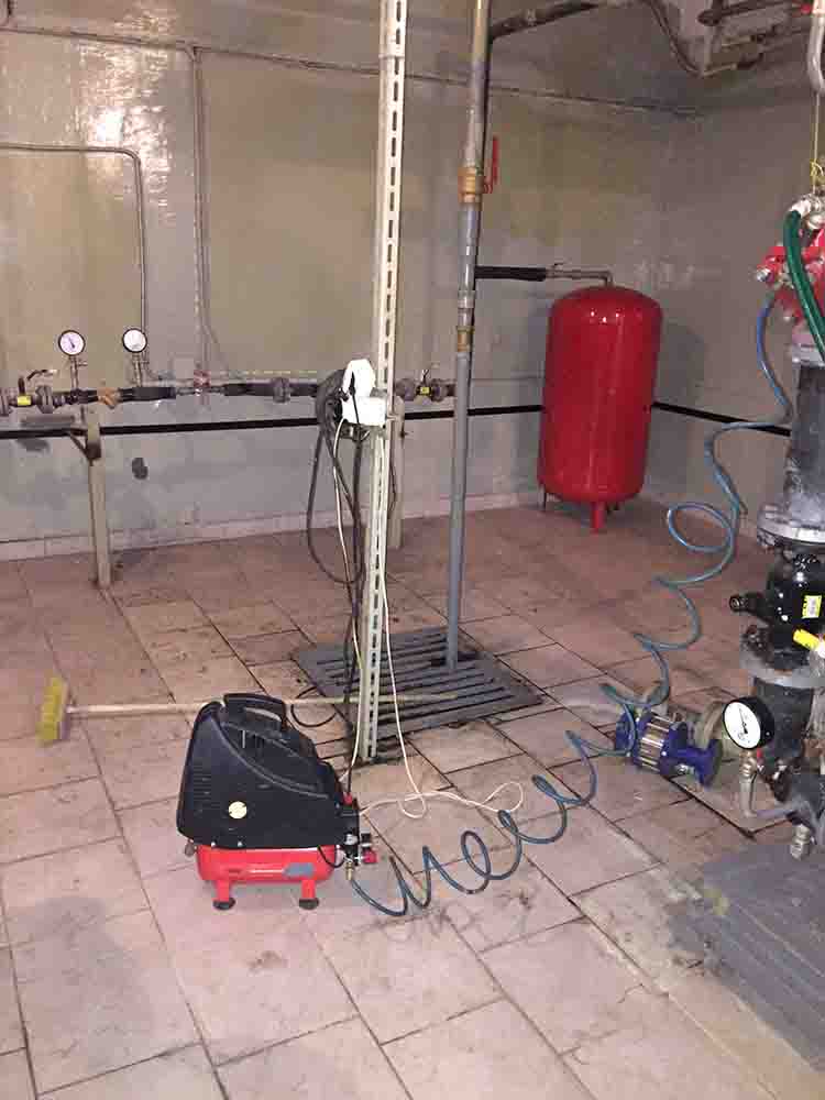 Добрият компресор с мощно и равномерно подаване на въздух доставя смес въздух-вода към тръбопроводите, която разхлабва и събаря отлаганията от котлен камък вътре в тръбите. Компресорът трябва да работи в равномерен импулсен режим, създавайки не просто постоянен въздушен поток, а серия от въздушни и водни тласъци. Точно така се образуват вихрите за разхлабване на измет.
