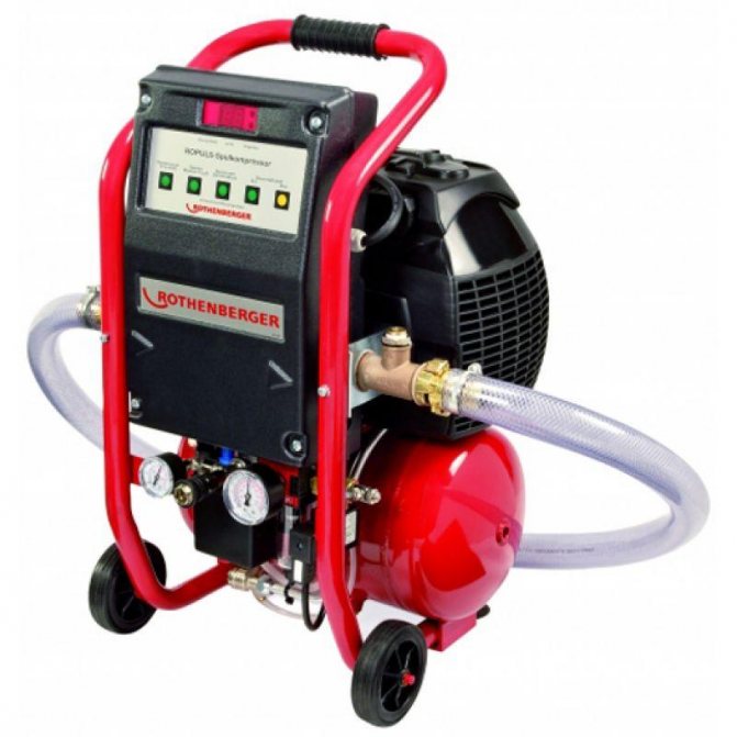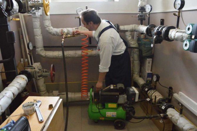 Въздухът се подава към отоплителната система от компресора, за да създаде мощен водно-въздушен поток с вихри. Това устройство трябва да показва налягане от 0,6 MPa на изхода. За да се предотврати проникването на вода от системата в приемника на компресора, на мястото, където е свързан към тръбопроводната система, е монтиран възвратен клапан.