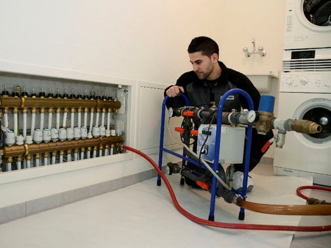 В къщи с централизирана отоплителна система тя трябва да се промива от служители на топлоснабдителната компания. В частна къща тази процедура се извършва от собствениците или поканените специалисти.