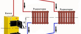 Те казват, че с естествената циркулация на охлаждащата течност радиаторите, непременно трябва да бъдат разположени над котела. Това твърдение е вярно само когато отоплителните уреди са разположени в едно ниво. Ако броят на нивата е два или повече, радиаторите на долния слой могат да бъдат разположени под котела, което трябва да се провери чрез хидравлично изчисление.