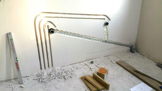 Съвет! За да получите най-точната представа за крайния продукт, а именно, за да разберете броя на скосяванията и завоите, пресичането на тръби, очертайте схемата за полагане директно върху стените с молив.