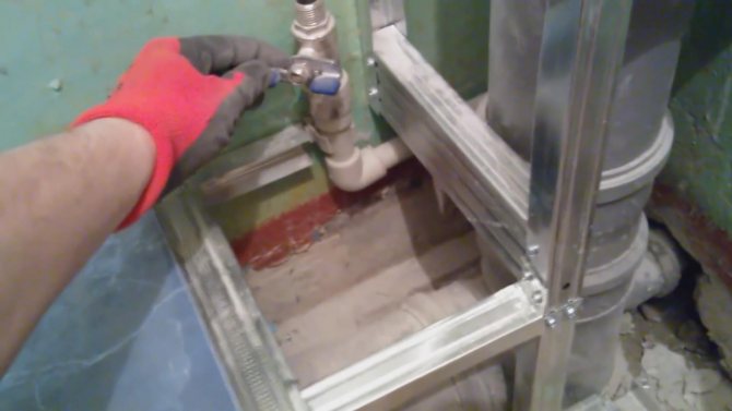 - На разстояние 3-5 см от най-изпъкналите части на водопровода или канализацията се очертават линии. Те използват ниво, в противен случай дефектите на готовата кутия ще бъдат силно видими.