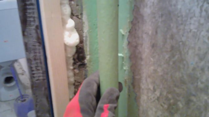 Значителен недостатък е ограничен достъп до тръбопроводи при извънредни ситуации. Следователно тръбите без връзки са скрити в жлебовете, извеждат се заключващи и други устройства. Предварително начертайте план, посочете местоположението на всички елементи. На стената се изтеглят успоредни линии по ширината на тръбопроводите с леко увеличение. За настаняване на изолационните втулки е необходимо свободно пространство.
