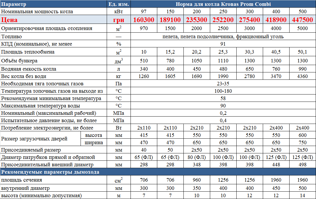 | Тръба | Минимална мощност, kW | Максимална мощност, kW |