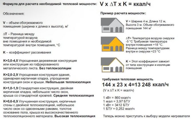 В допълнение към климатичните условия в регионите се вземат предвид и други изменения за точни изчисления: височина на тавана и топлинни загуби на сградата. Средната височина на тавана е 2,6 m.