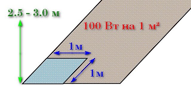 Най-примитивният метод на изчисление се основава само на площта на отопляваните помещения.