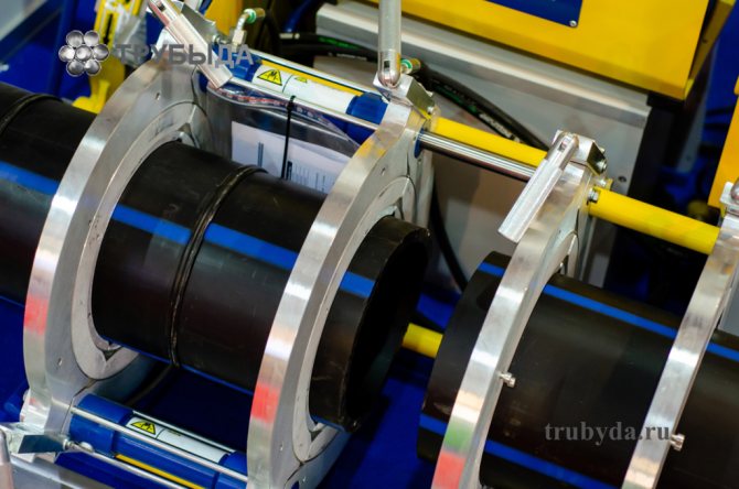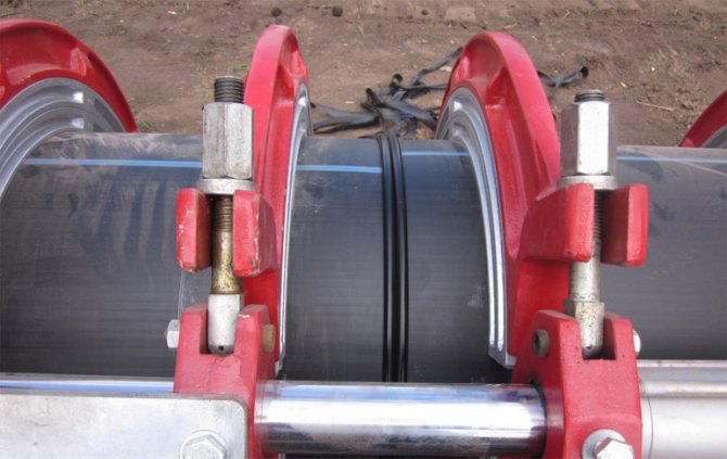 Този метод се извършва с помощта на специална машина за заваряване на тръбопроводи. Самият процес е както следва. Краищата на елементите се почистват от замърсявания и се избърсват с обезмаслително съединение. След това те се нагряват със специален нагревателен елемент до вискозно състояние и се свързват под налягане. След това шевът трябва да се охлади естествено и едва тогава тръбопроводът може да се експлоатира.