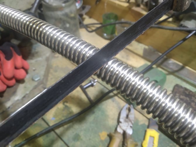 Първо вмъкваме медна шайба в тръбата, подравняваме я перпендикулярно на дължината на тръбата, поставяме върху нея цинкова шайба, след това картон и така нататък всички 11 елемента. За удобство леко натъпчете елементите с пластмасова пръчка.