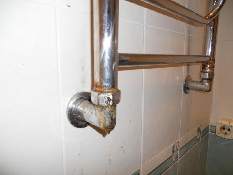 Ако на кръстовището тече затоплена релса за кърпи, тогава такъв процес е изпълнен с повреда на продукта, както и с риск от наводняване на съседите с продължително отсъствие на собственици и увеличен теч.