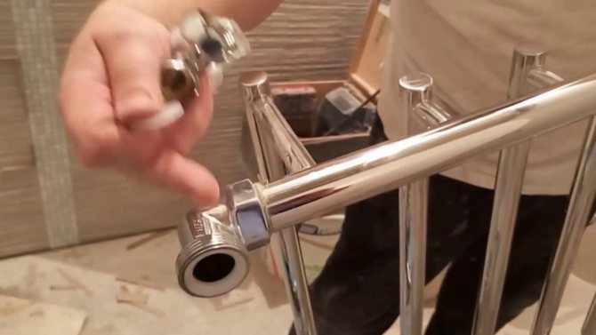 С правилното свързване е инсталиран кран, който ви позволява да изключите отопляемата релса за кърпи от основната отоплителна система и в същото време да не спирате топлата вода.