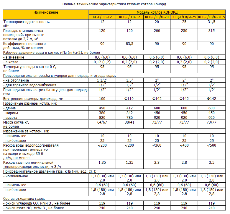 Тези устройства могат да работят при понижено налягане на газа и са нелетливи, поради което ще работят без електричество. Газовите котли "Conord", отзиви за които трябва да се прочетат преди закупуването на такова оборудване, се доставят от производителя с 15-годишна гаранция за експлоатационния живот. Що се отнася до фабричната гаранция, тя продължава 3 години.