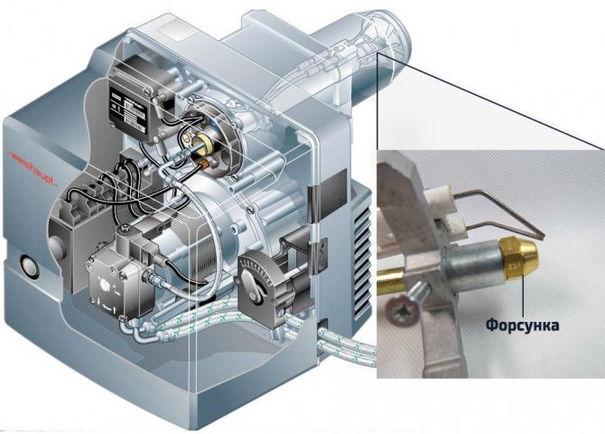 Местоположението на дюзата в дизеловата горелка.