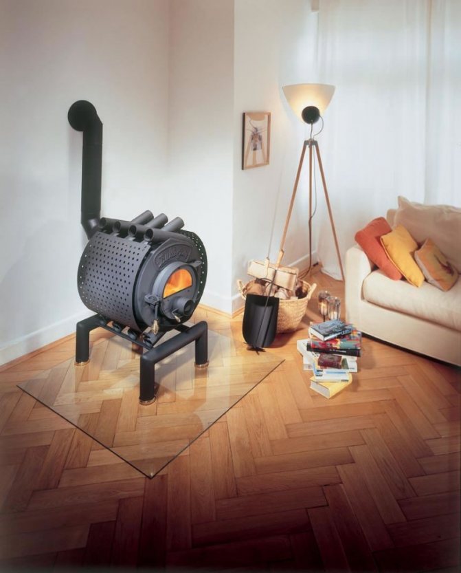 - Тип камина. Това е отоплително оборудване със стъклена врата. Това е удобен и естетичен вид печки, в които можете да контролирате пламъка, без да отваряте вратата на камината.
