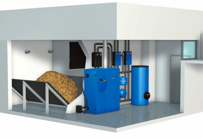 Както беше отбелязано по-горе, основата е подготовката на биогаз с последващото му използване. Разширеният състав на оборудването на такава котелна централа: място за приемане на гориво, оборудване за смесване на биогорива, биореактори, система за подаване на гориво за биореактори, системи за пречистване на биогаз (ако е необходимо). Освен това, в зависимост от целите на котелното помещение, можете да инсталирате класически газов котел (топла вода или пара). Ако е необходимо да се генерира електричество, освен топлина, е възможно да се инсталира или GPU, газова турбина или парна турбина. След газовата турбина е инсталиран котел за отпадъчна топлина. Такова котелно помещение може да бъде инсталирано, включително в близост до пречиствателни съоръжения, за изхвърляне на натрупаните утайки.