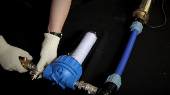 Тъй като разговорът е за водоснабдителната система на селска къща, трябва да се има предвид, че най-често тук се организира местна водоснабдителна система, изпомпваща вода от кладенец или кладенец. Снимката по-долу показва диаграма на монтажа на разширителен резервоар, който е свързан с потопяема помпа, разположена в кладенец.